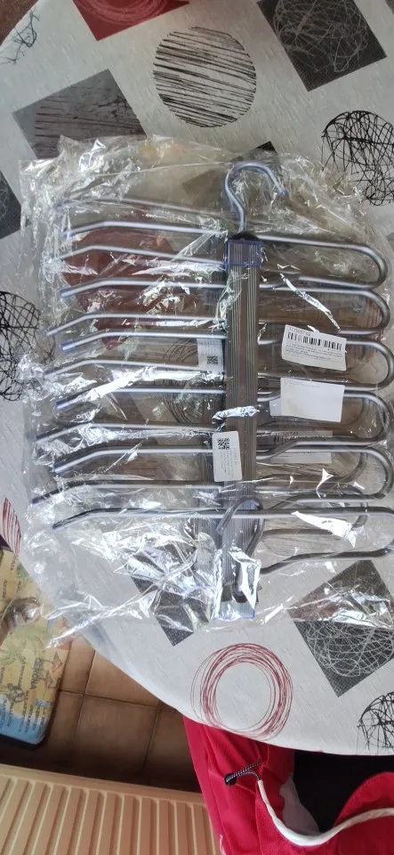 The Everyday Pants Hanger uses a vertical, multi-tier format to hold multiple garments in the space of one. Each rounded rod supports fabric gently, allowing pants, skirts, or scarves to hang naturally without sharp folds or pressure points.