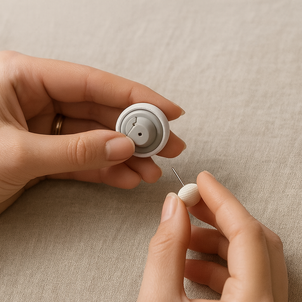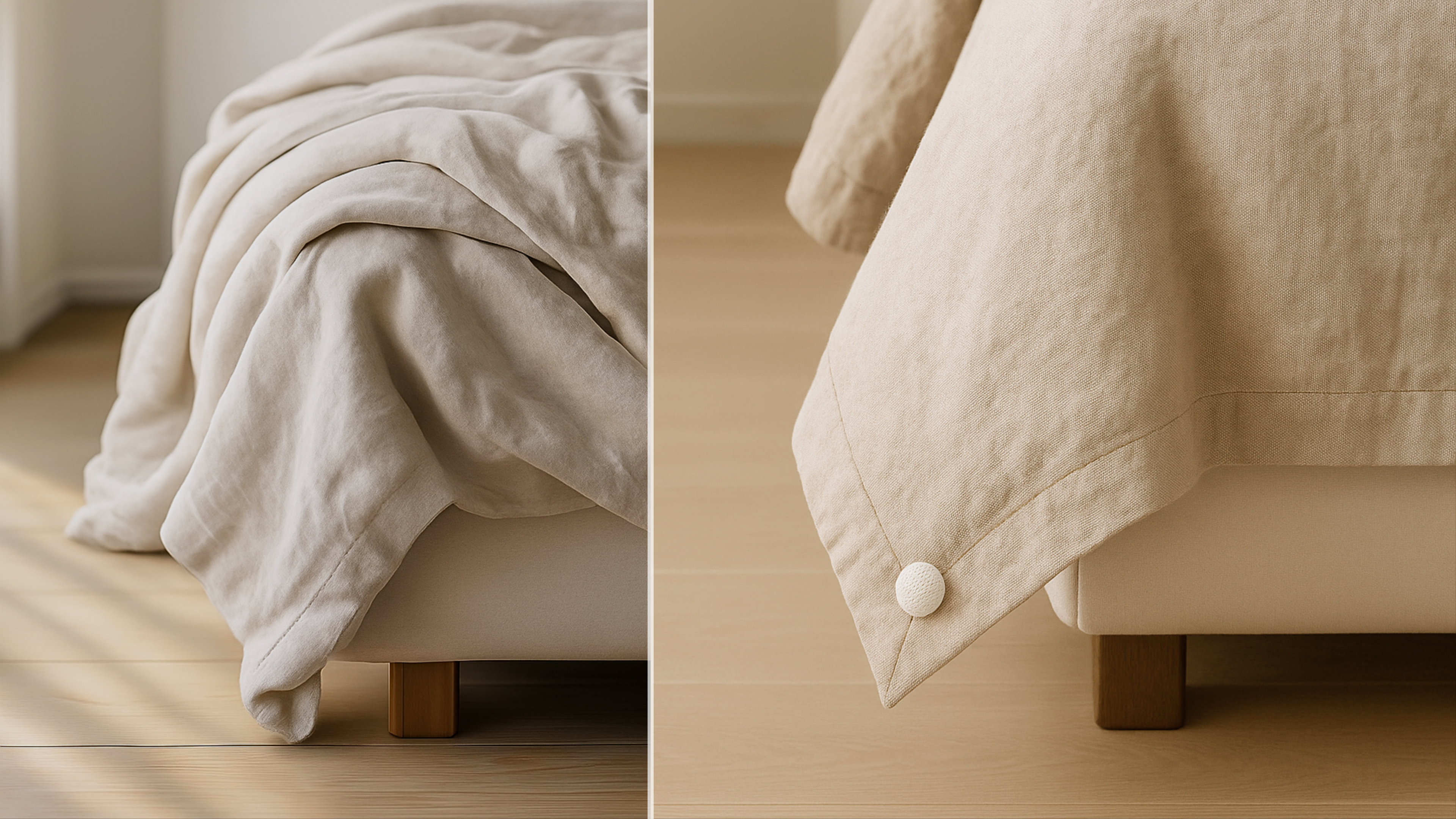 Unlike traditional clips or ties, our pins are gentle, discreet, and completely damage-free. The upholstered button blends seamlessly into your bedding while the secure fastening mechanism anchors your quilt with ease — creating a consistently smooth and elevated bed setup.