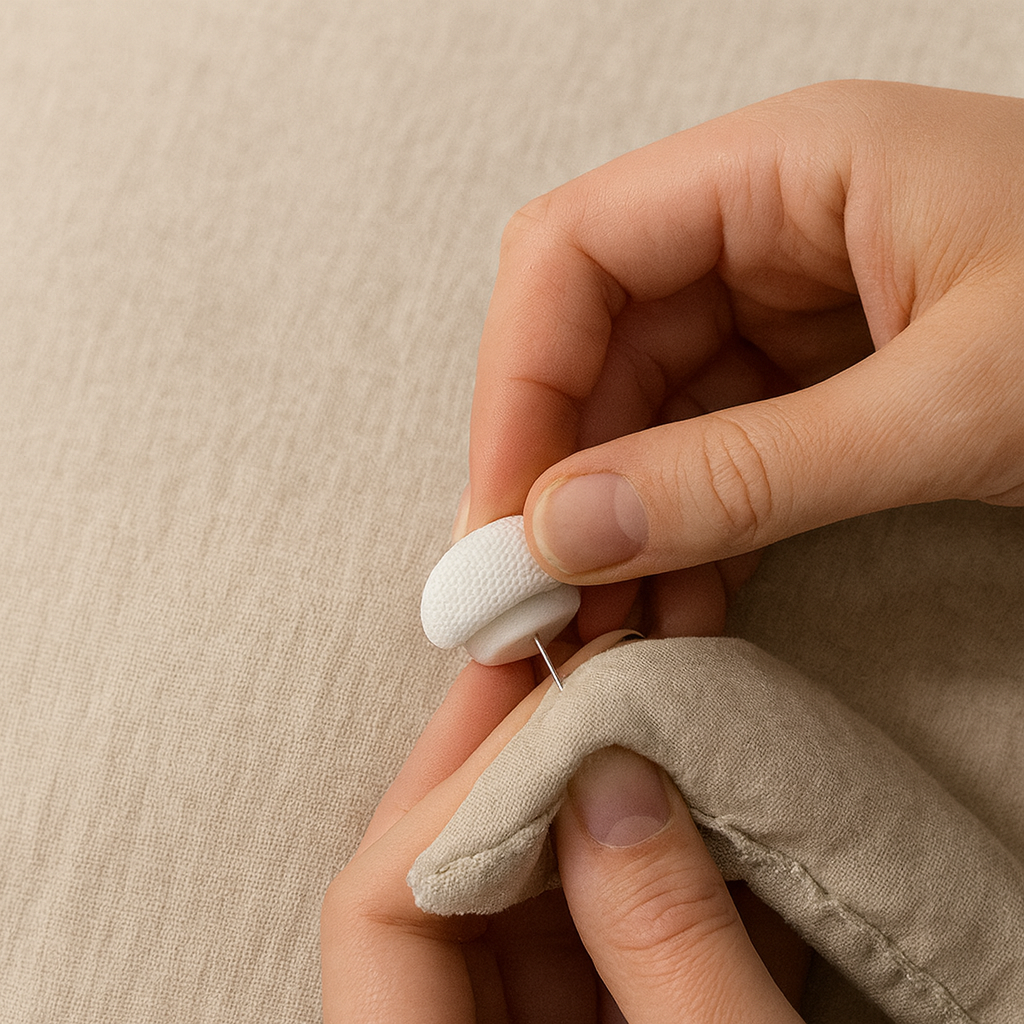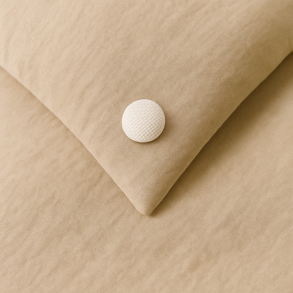 Crafted with a soft, textured dome and a discreet fastening system, these quilt pins blend naturally into your linen, bamboo, and cotton bedding. Designed to bring intentional calm and subtle order to your sleep routine.