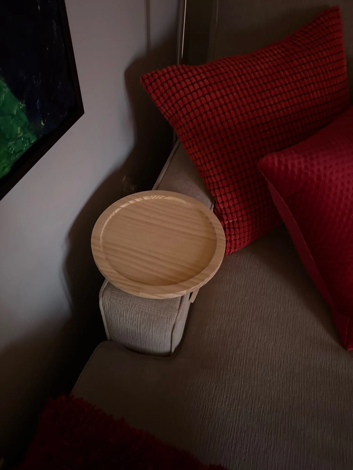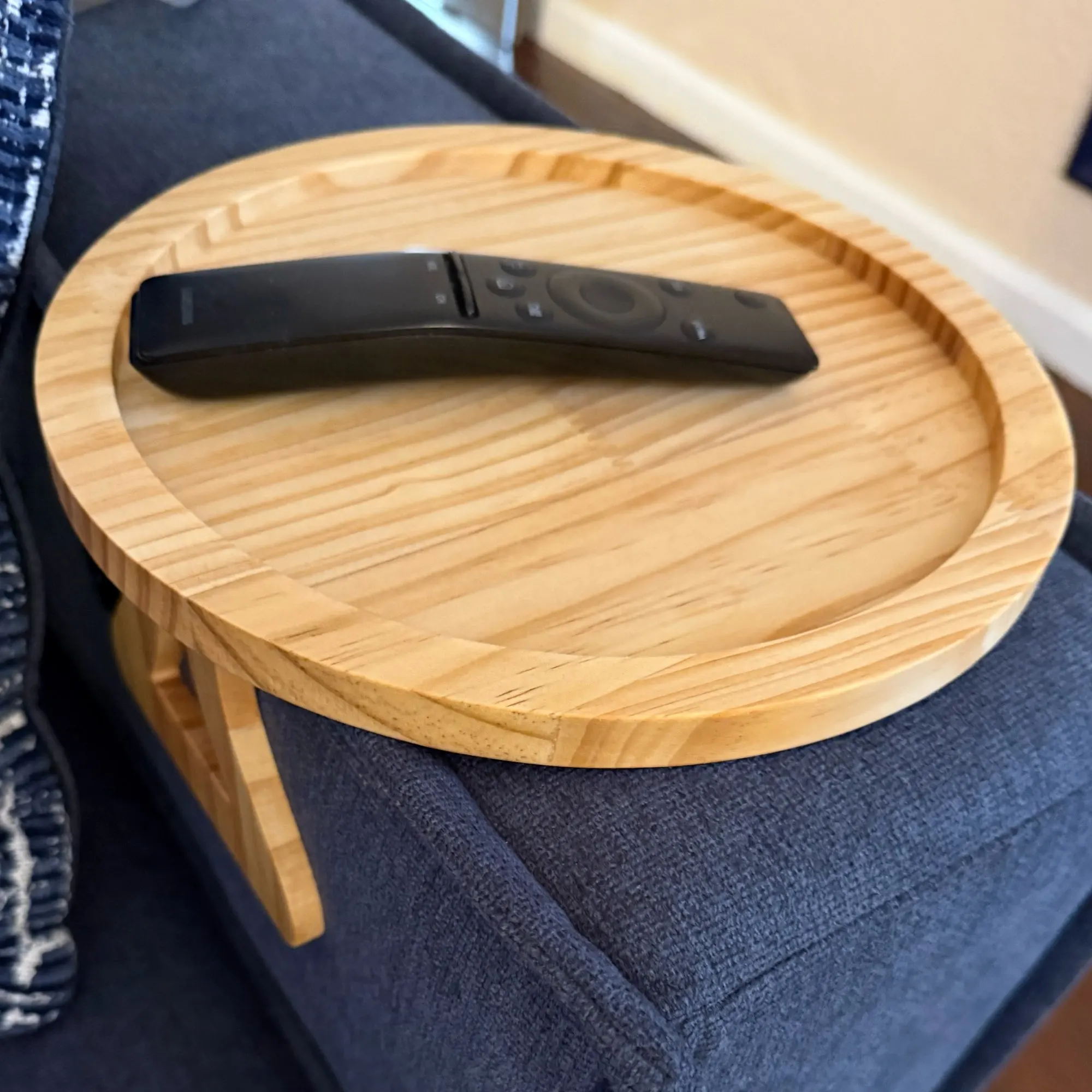 Designed to anchor securely onto your sofa arm, it provides a reliable place for your coffee, book, or evening essentials, keeping everything close at hand while maintaining a calm, considered look.