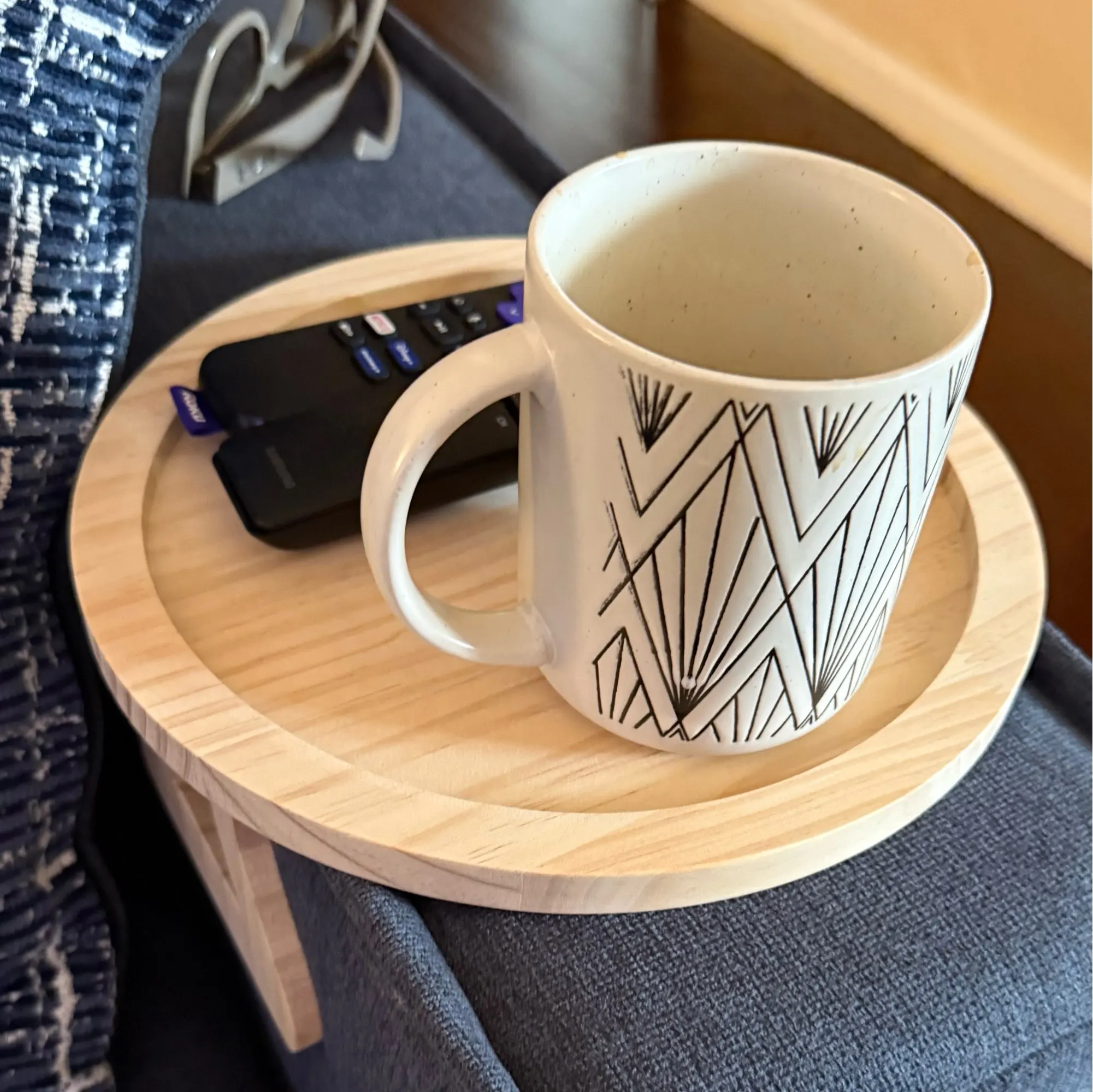 The Everyday Sofa Tray Table creates a stable surface where you need it most — without adding clutter to your living space.